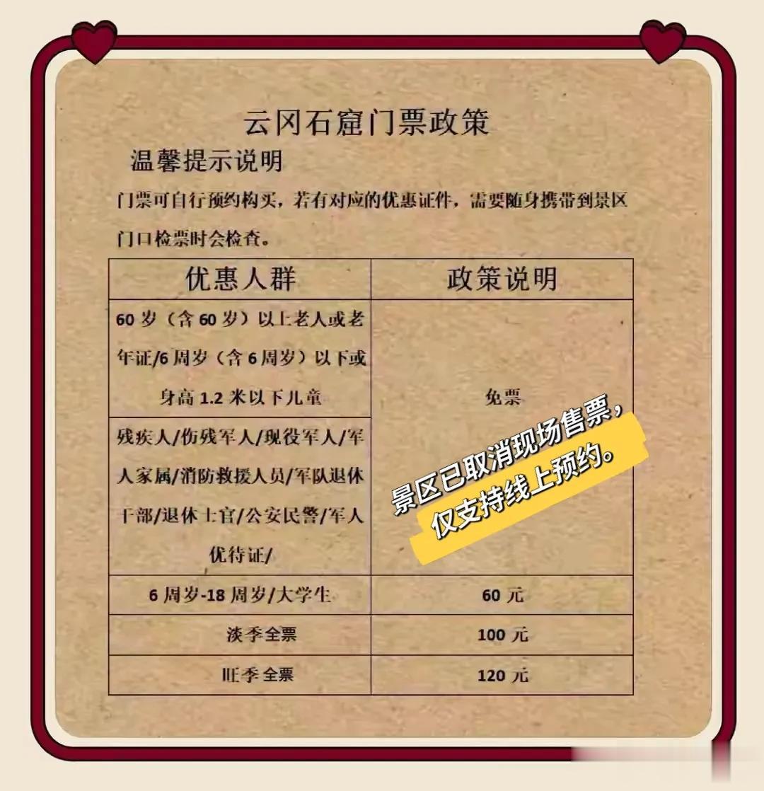 4. 云冈石窟门票价格是多少?有哪些优惠?