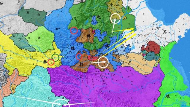同理,我们在很多时候感觉魏国的实力不强,很大原因也来自于它地处天下的最中央,与齐、楚、秦、韩、赵这五个强国全部接壤,这让它很难把优势兵力调集在一个方向——又由于它的主要利益纠缠在东方,因此几乎很少能将主要战争资源投入在和秦国的战争中,因此出现了对秦国弱势或被动的表象——这一点在魏文侯及魏武侯时期就有所体现,因此我们同样不能把魏国在秦孝公时期的失败单方面解释为秦国变法的结果。