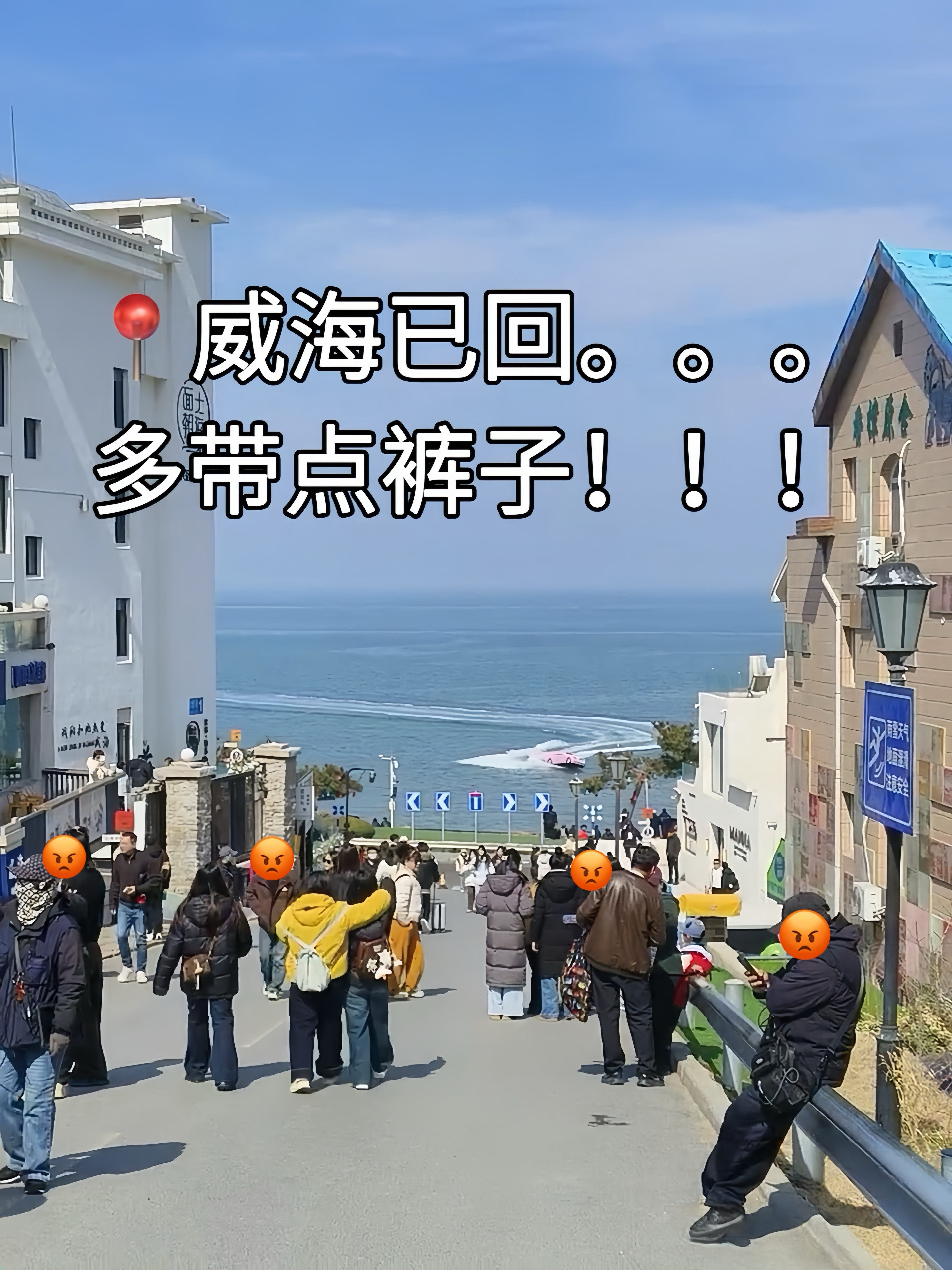 1️⃣四月的威海风超大,早晚温差能有10°C,去景点尤其是海边记得带上防风的外套: