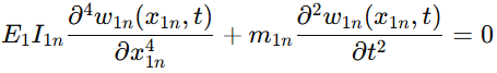 驱动梁不是随便激励都能跑。论文先建立连续体动力学模型,再做模态分析,最后用有限元验证。核心自由振动方程写成: