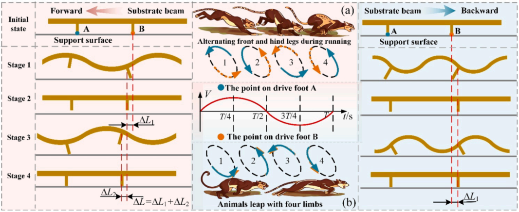 论文证明,用同一根驱动梁,只需切换工作模态和激励频率,就能实现前进与后退。这个设计让结构保持简洁,但运动能力明显增强。