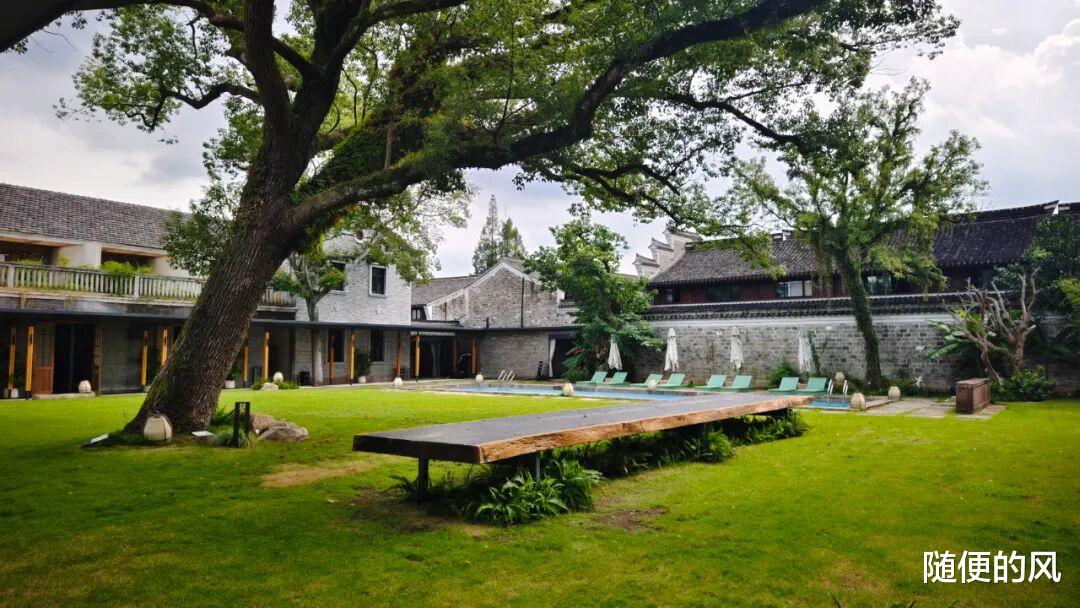 如今,它被赋予了新生,成为一家设计独特、服务贴心的“Boutique Hotel”。酒店最令人惊艳之处,是在古镇核心区内拥有一片开阔的草坪,中央矗立着一棵古老的香樟树,辅以泳池和老宅,营造出一种东西方韵味交融的独特氛围