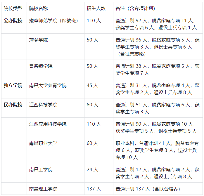豫章师范学院、萍乡学院等院校单独设置招生计划,录取分数线低于普通类约 15-20 分。