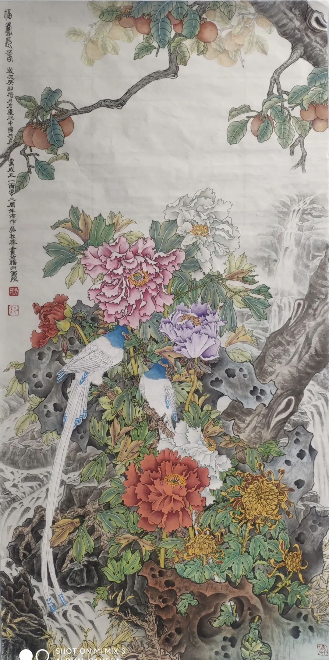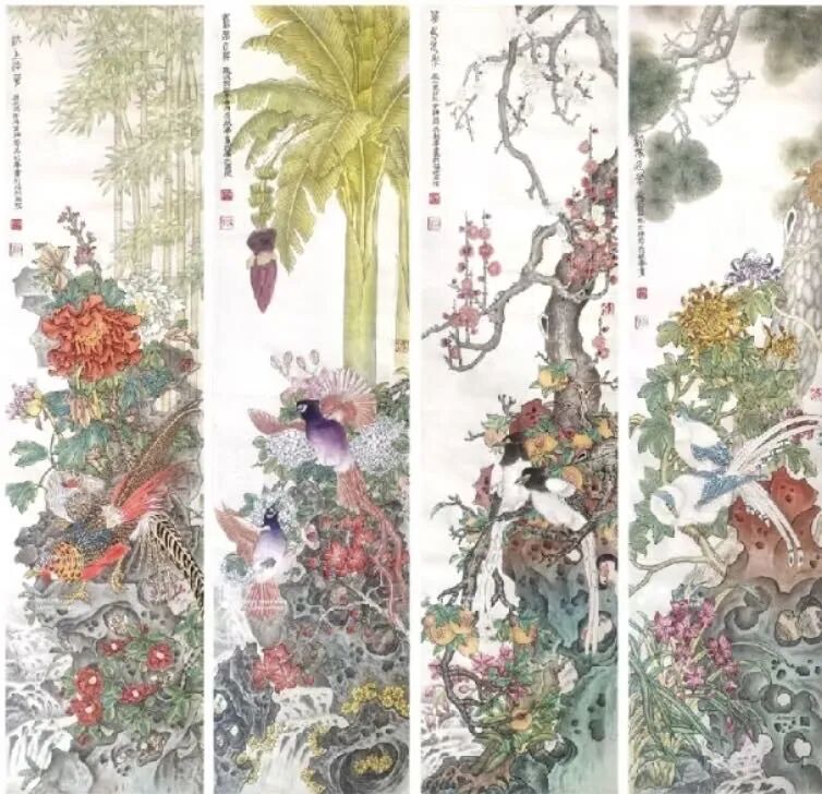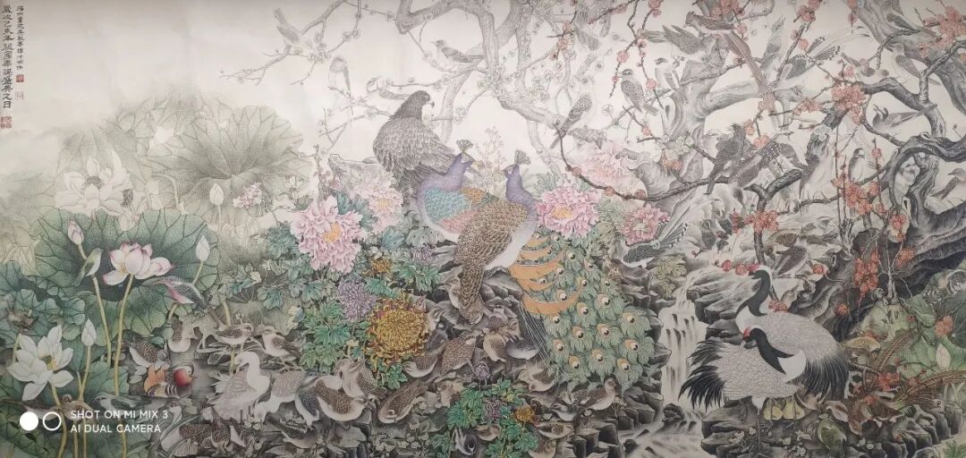 《四季皆春 百鸟贺岁》240x120cm 2015年