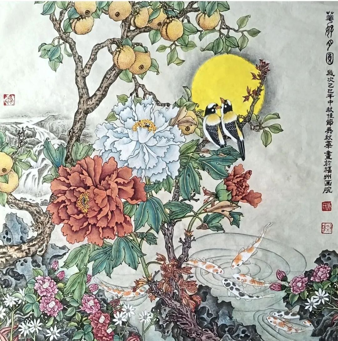 值此国庆、中秋双节同庆之际,品读吴秋华的书画作品,回望他为闽都文化所做的贡献,我们既能领略传统工笔画的雅致神韵与文学意趣,更能体会到一位艺术家“扎根故土、传薪播火”的赤子之心。“双节品艺·闽都传薪”,这既是对他数十年坚守的致敬,也是对他为福州文化传承所献力量的礼赞。愿他的笔墨之路常青,让闽都书画的文脉在新时代持续绵延。