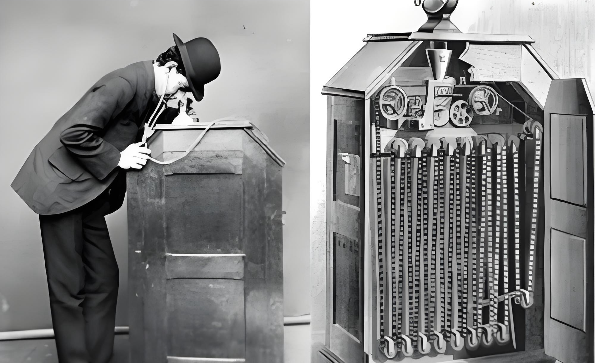 爱迪生让机械师约翰·克鲁西造了一台原型机。这台机器简陋得像个厨房用具:一个带螺纹的金属圆筒,上面裹着锡箔纸,旁边架着一个送话器,送话器底部有一根钢针。