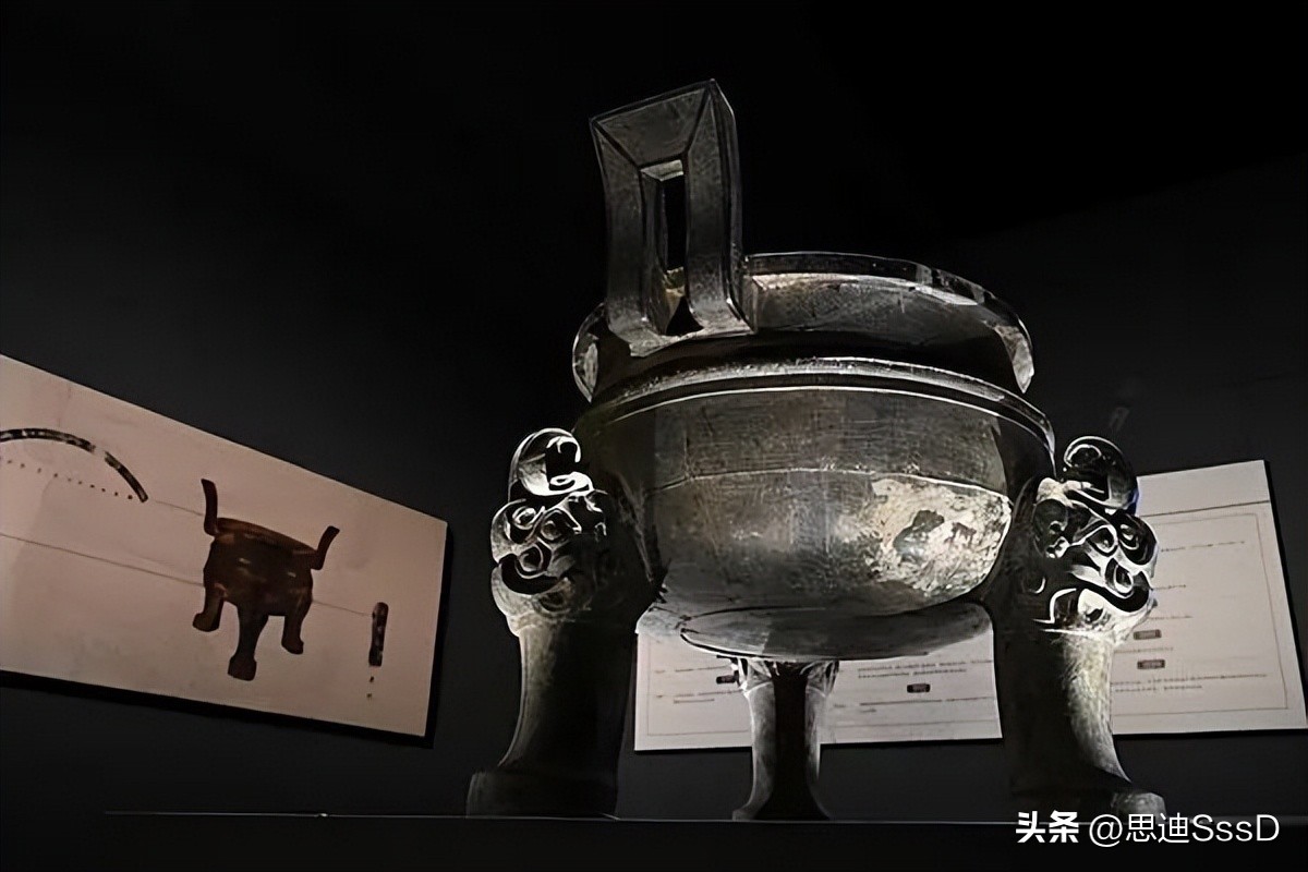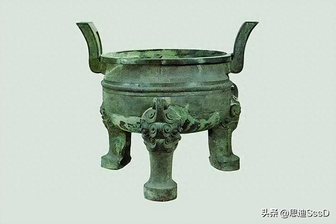 战国铸客铜鼎,又称楚大鼎或大铸客鼎,圆口,方唇,鼓腹,圆底,附耳,耳的上部外侈,三蹄足。鼎腹饰一周突起圆箍,双耳及颈部外壁饰有模印菱形几何纹,足根部饰有浮雕旋涡纹。