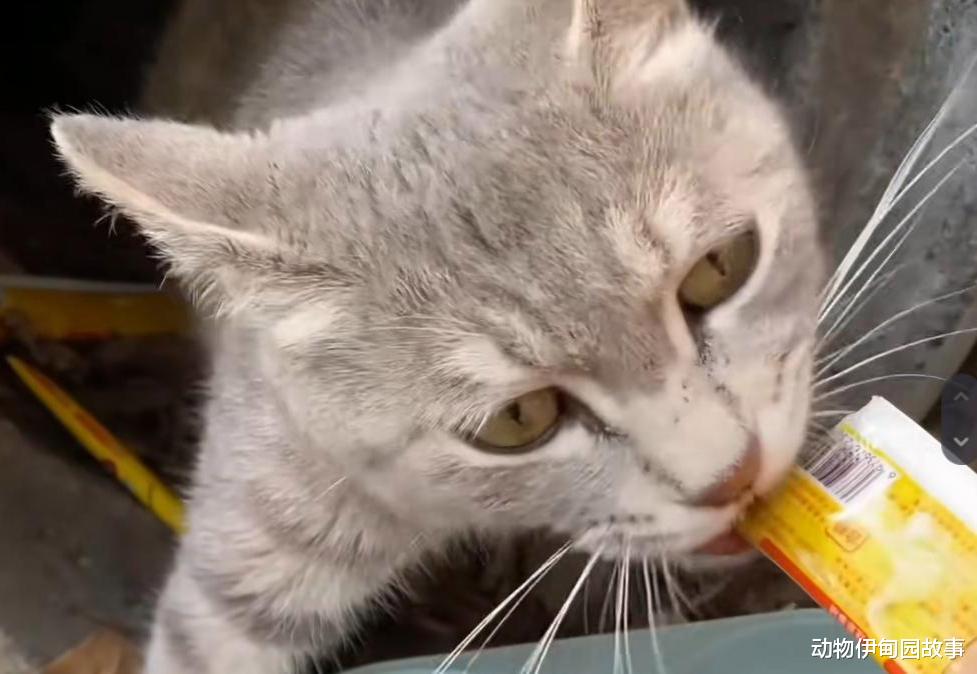 由于我们还小,对陌生人缺乏防备的心思,对于他给的猫条也是难以抗拒,于是迫不及待地上前大口大口地吃了起来!