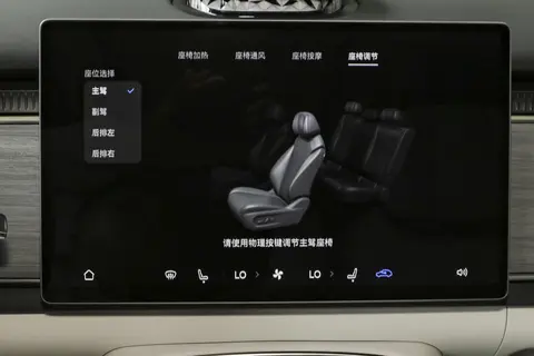 车内软性材质覆盖率达16.4平方米,顶棚采用OEKO-TEX母婴级亲肤认证的超纤绒类麂皮,触感柔软且耐污性强;门板处点缀繁星闪烁饰板,内部嵌入128颗LED灯珠,支持256色全域漫反射氛围灯,可随音乐节奏律动或自定义撞色模式(如蓝紫渐变、橙粉过渡),营造沉浸式座舱体验。座椅采用12层“云感零压”结构,表层为NAPPA真皮,中间层为3D空气棉与慢回弹记忆棉,底层为高强度支撑骨架,兼顾柔软度与支撑性。前排与后排外侧座椅配备3档通风/加热及8点按摩功能(覆盖肩部、背部、腰部、臀部),副驾提供零重力座椅(支持121°背角、125°膝角调节与腿托加热),可模拟太空失重状态,缓解长途乘坐疲劳。