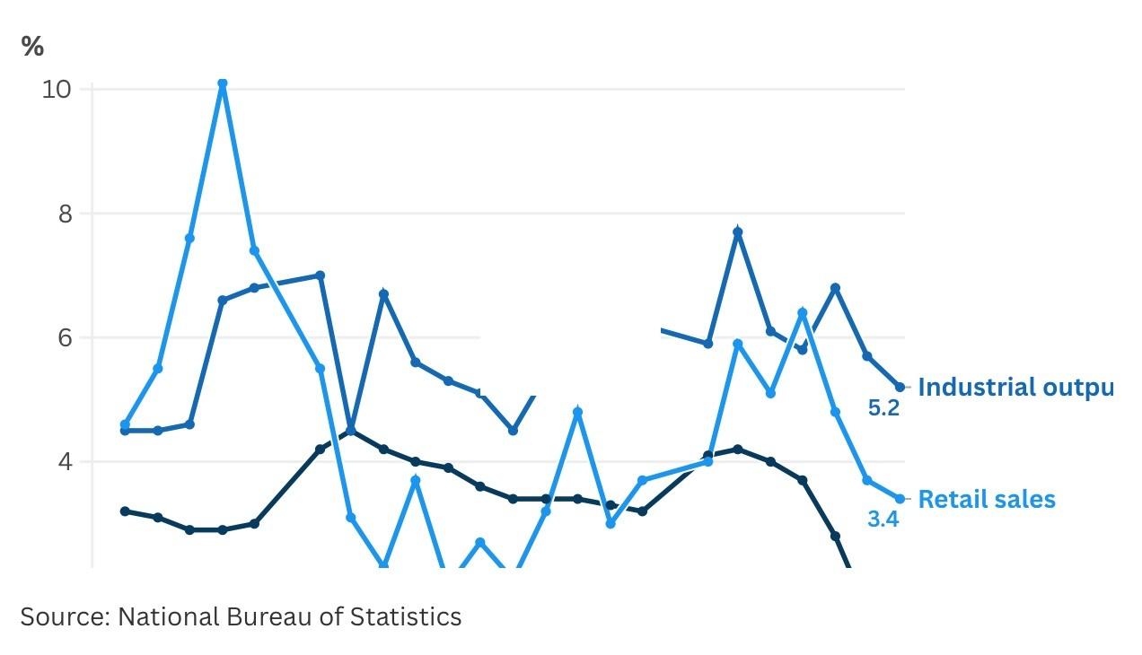 根据LSEG的数据,八月份工业产出增长率放缓至5.2%,创下2024年8月以来的最低水平,而七月份还为5.7%。经济学家此前预计八月份的数据将与七月持平。