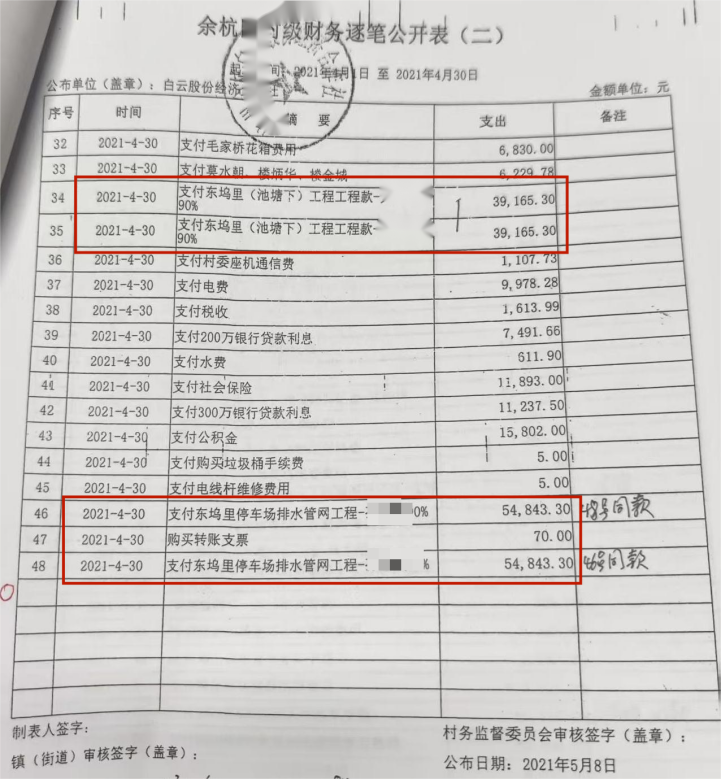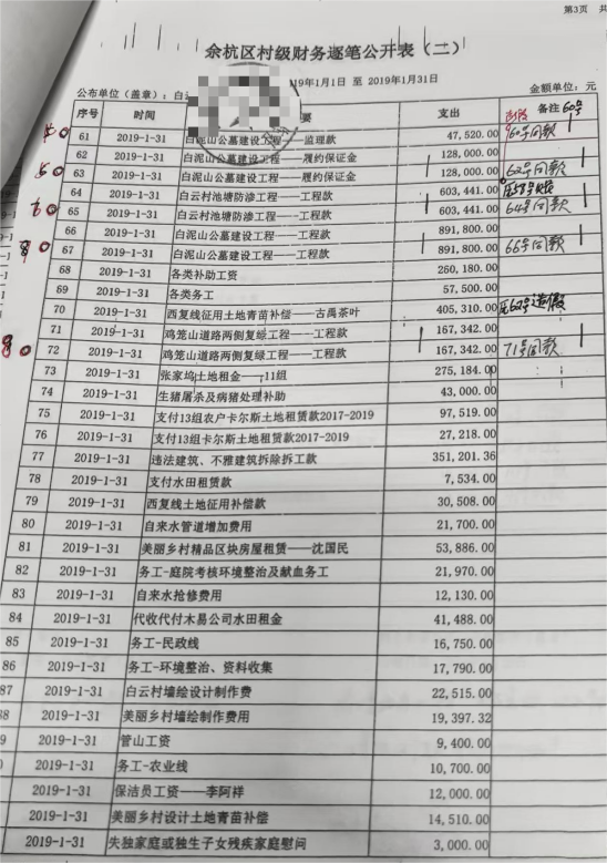 近日,杭州市余杭区中泰街道白云村村民林先生反映,该村2016至2022年村级财务存在多处“重复记账”等异常情况。同时反映邻村出现相同情况,数额巨大,去向不明。林先生多年就相关问题持续反映,希望能推动账目全面公开、强化基层财务规范管理。