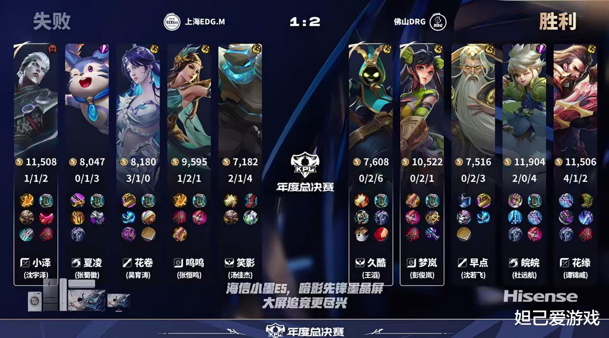 这场比赛的结束意味着,DRG将能更进一步,但对EDGM而言,这次年总的比赛就已经全部结束了,作为一支加入KPL很多很多年的老队伍,EDGM一直没能拿到什么好的成绩,这不禁令人深感绝望,以至于KPL导播给到现场画面时,能够看到一些观众当场泪目。