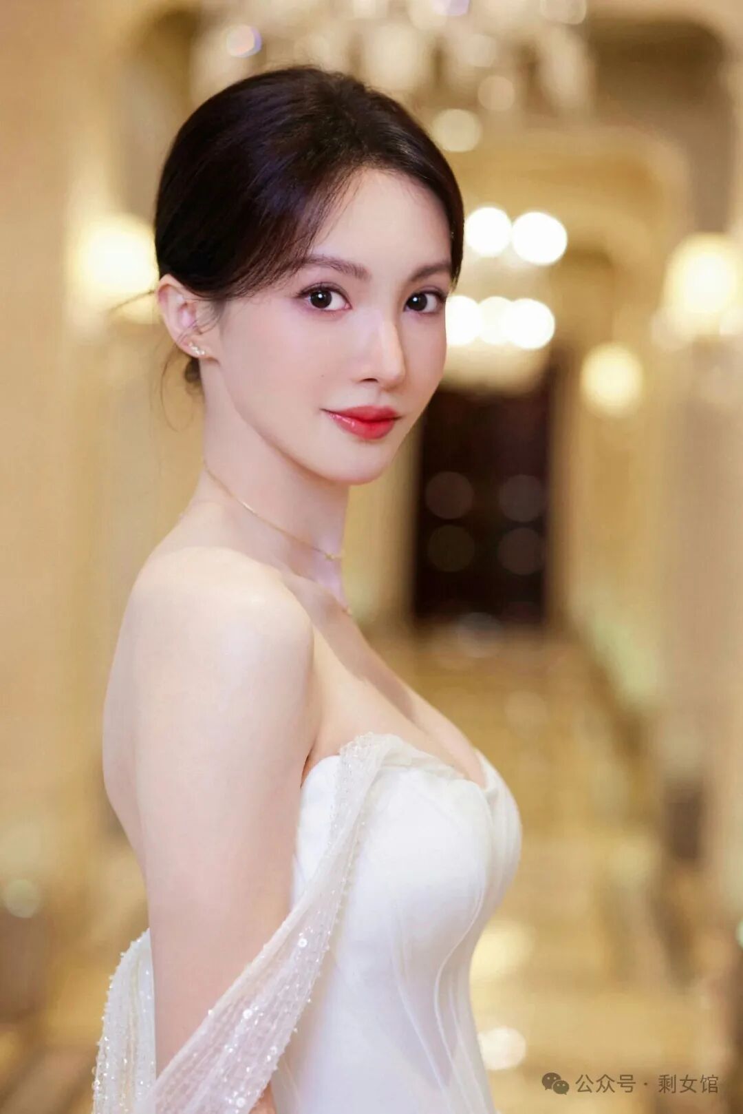脊背的曲线在深V礼服中延伸,节节脊椎如串起的珍珠,在灯光下泛着温润的光泽。这不是瘦弱,是千年白玉雕琢的风骨。