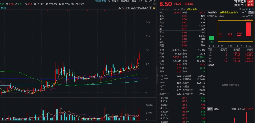 电力持续的反复活跃,每天都要有几只公司涨停。电力板块持续活跃,韶能股份3连板,甘肃能源、兆新股份涨停,长源电力、南网能源、华电辽能等涨超4%。
