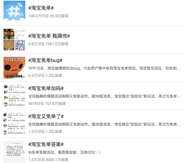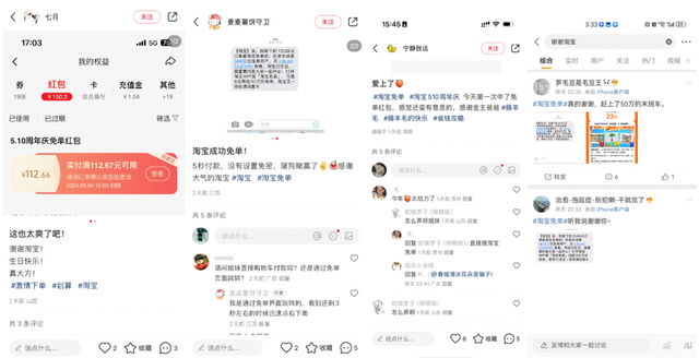用户反馈中,大部分持积极态度,纷纷感谢淘宝为其送上的福利,甚至“吐槽”称“淘宝发货太快了”、“淘宝优惠很多”。在参与活动时,用户不仅享受免单的乐趣,还通过答题、凑单等方式体验到淘宝商品的丰富性和活动题目的趣味性,进一步加深了对淘宝的好感度。