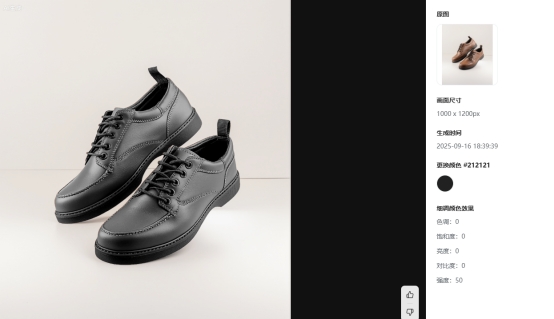 提供了比较基本的图片编辑与色彩调教的能力,可以用于简单的服饰整体色调上的风格改变;在一些模版化的图片或是一些简单的展示图上使用起来还是相当便利的,但是在针对服饰本身的区域检测与特殊材质的细节处理等方面表现一般,并且只适用于较浅层的改色需求。