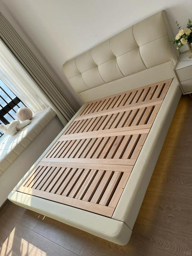 对于真皮床来说,榉木排骨架是一个很好的选择。榉木作为一种硬木,具有很高的承重能力和稳定性,能够有效支撑真皮床垫,避免变形或下沉。同时,榫卯结构的设计使得榉木排骨架的连接更为牢固,间隙小,板块宽,不仅提高了承重力,还减少了异响的可能性。