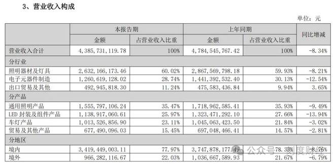 核心照明业务作为公司营收基石,已显现增长乏力与盈利弱化的双重困境。