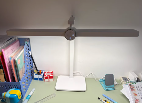 ✅ 20cm长条发光面+均匀侧发光:它采用约20厘米的长条形光源,配合侧发光设计,让光线较为均匀地覆盖约1米宽的桌面。整体光线柔和自然,在日常读写和学习中能提供稳定的照明体验。