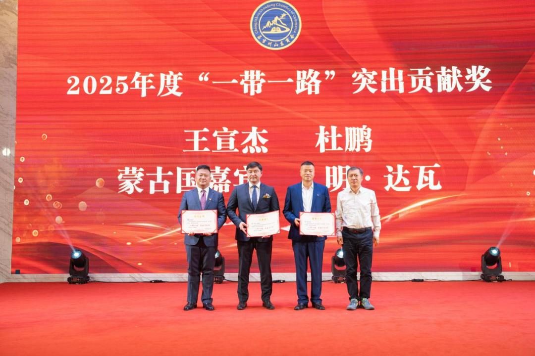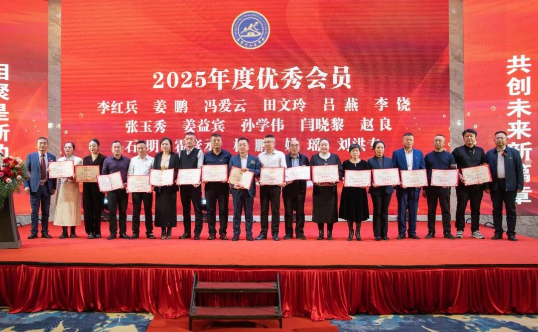 随后,大会举行了新会员授牌仪式及表彰环节。先后颁发2025年度商会优秀党员、优秀会员、商会工作奉献奖、“一带一路”突出贡献奖,对在全年工作中表现突出、勇于担当、贡献卓著的集体与个人予以隆重表彰。获奖代表上台领奖,台下掌声雷动,既是对先进典型的致敬,更是对全体会员奋发向上的激励。