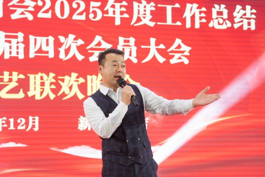 昌吉州党委统战部副部长、工商联党组书记徐刚致辞。他高度评价了昌吉州山东商会在即将过去的2025年所做的大量卓有成效的工作。在党建引领、服务会员、履行社会责任以及开展“文化润疆、体育惠民”等方面表现突出,充分展现了鲁商的担当与风采。他强调,面对新的发展形势,昌吉州山东商会要深入学习贯彻党的二十届四中全会精神,准确把握“十五五”规划蓝图,主动作为,贯彻落实昌吉州党委政府的各项决策部署,为中国式现代化谱写新疆篇章贡献智慧和力量。