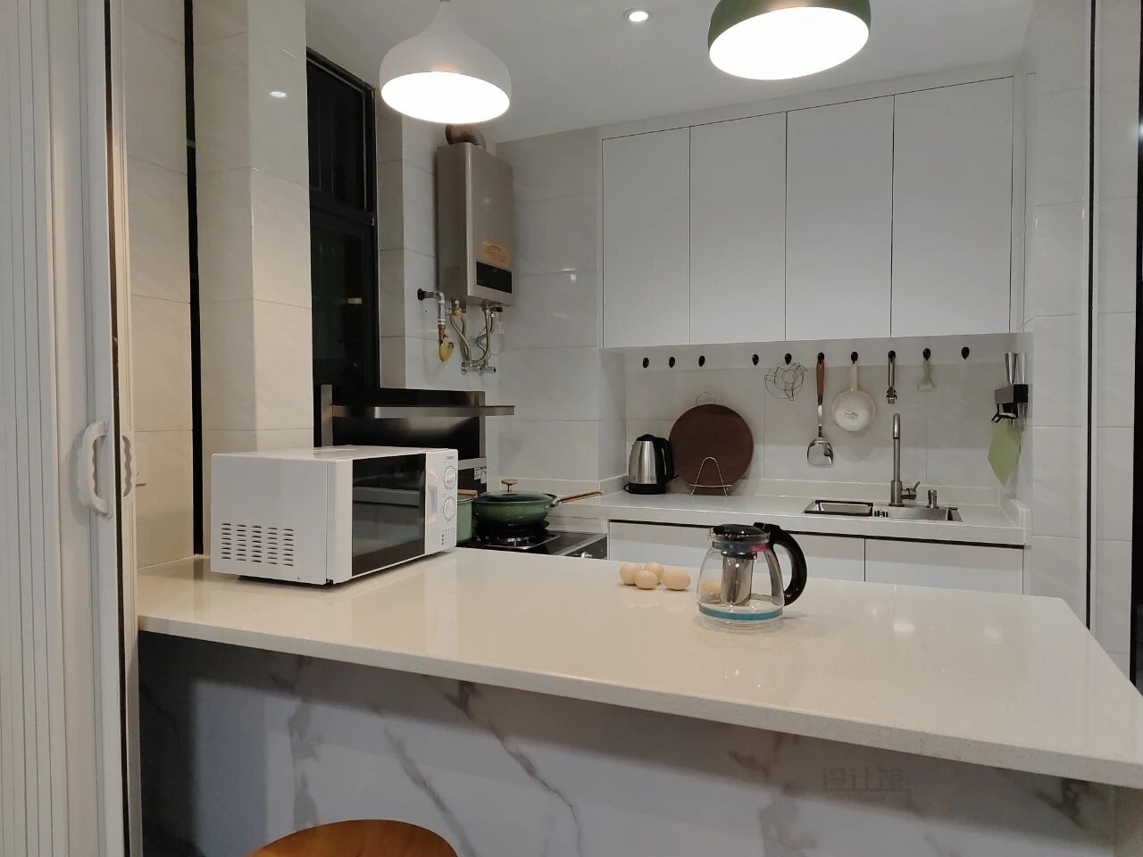 ②小家电的收纳:预留开放格或带插座的柜体,为豆浆机、烧水壶等小家电提供安身之所,无需占用宝贵的台面。