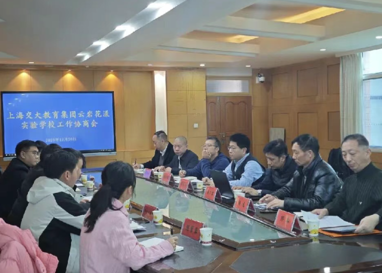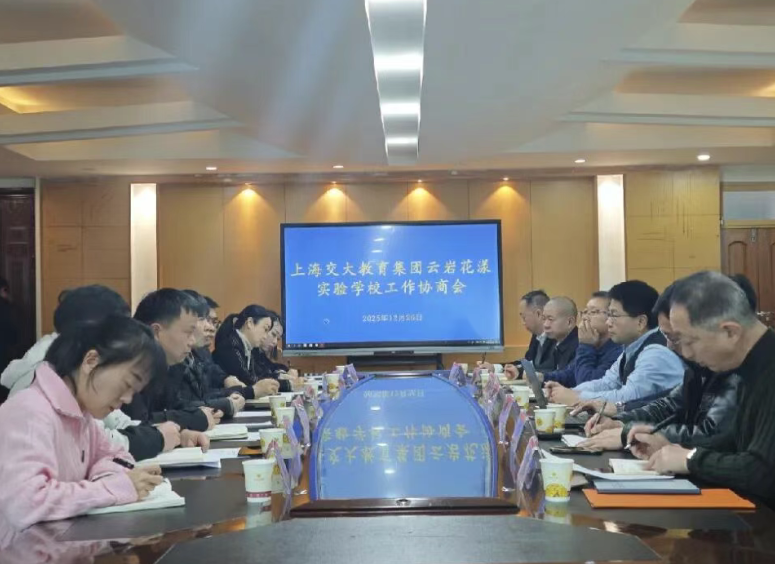 2025年12月26日下午13:00,上海交大教育集团云岩花漾实验学校(筹)工作推进交流会在云岩区教育局412会议室圆满召开。