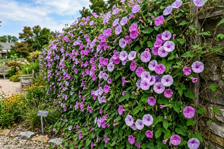 关键是,它跟咱们平时见的牵牛花完全不是一回事。普通牵牛花,早上开晚上谢,一天就没了。这个不一样,一朵花能开三五天,阴天还能撑更久。而且它是宿根的——种一次,年年开花,不用每年重新种。