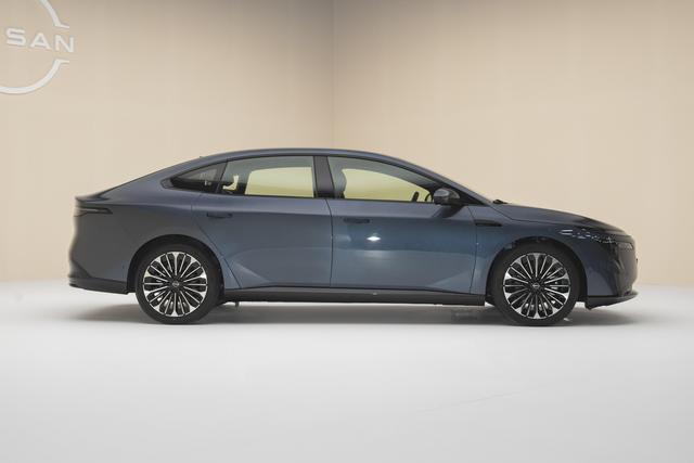初次接触东风日产N7实车,最先引起我注意的是它并未完全随从当前电动车设计的主流风潮。相较于许多新势力车型惯用的极简线条和符号化灯组,N7的前脸设计保留了日产品牌标志性的V-Motion元素轮廓,仅是将传统的格栅区域以封闭式面板替代。横贯车头的细长LED灯带在车辆解锁时会呈现呼吸般的点亮效果,但在常规行驶状态下则保持内敛,仅在执行转向灯或充电指示等功能时才会被激活,这种设计逻辑给人一种不喧宾夺主、恰到好处的印象。