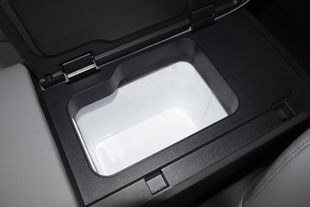 在一些细节设计上,N7也体现了对便利性的考量。例如,中央通道区域的水杯架带有阻尼限位结构,有助于稳定放置的饮品。前排遮阳板化妆镜配备了柔光照明,并提供三档色温调节。中央扶手箱内集成了一个容积为5.8升的冷暖箱,温度调节范围据称为-6℃至50℃,可以用来冰镇饮料或加热一些小份的即食点心。