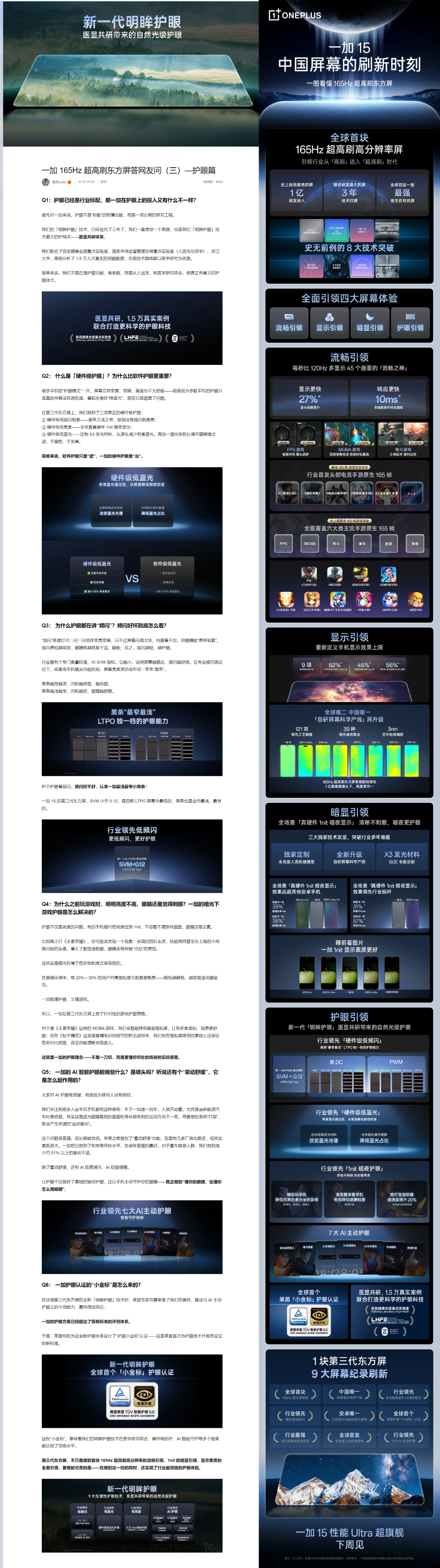 众所周知,根据目前官宣的信息显示,在一加15新机上将首发165Hz超高刷屏,那么该屏除了将带来更流畅的操控体验和手游感受等之外,在护眼方面怎么样呢?日前, @李杰Louis 发长文解答了“‘为什么说一加 15 的明眸护眼能力在行业标配之上 ?’‘伤眼‘隐形杀手’屏幕频闪,一加 15 做得怎么样 ?’‘全球首个‘护眼小金标’,含金量有多高 ?’#一加15首发165超高刷东方屏# ”等问题。