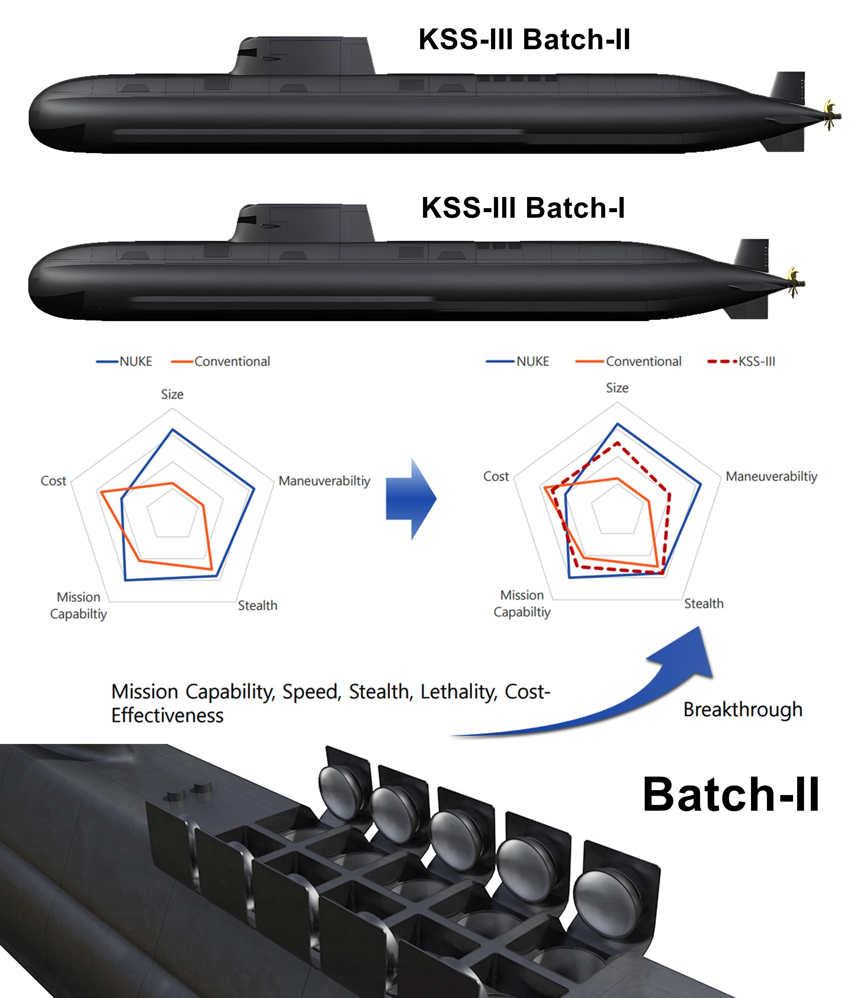 KSS-Ⅲ型第二批次潜艇在配备不依赖空气动力装置(AIP)的同时,首次将铅酸电池更换为锂电池,电池总能量提升2.5倍以上,大幅增加水下续航时间,降低了暴露风险。