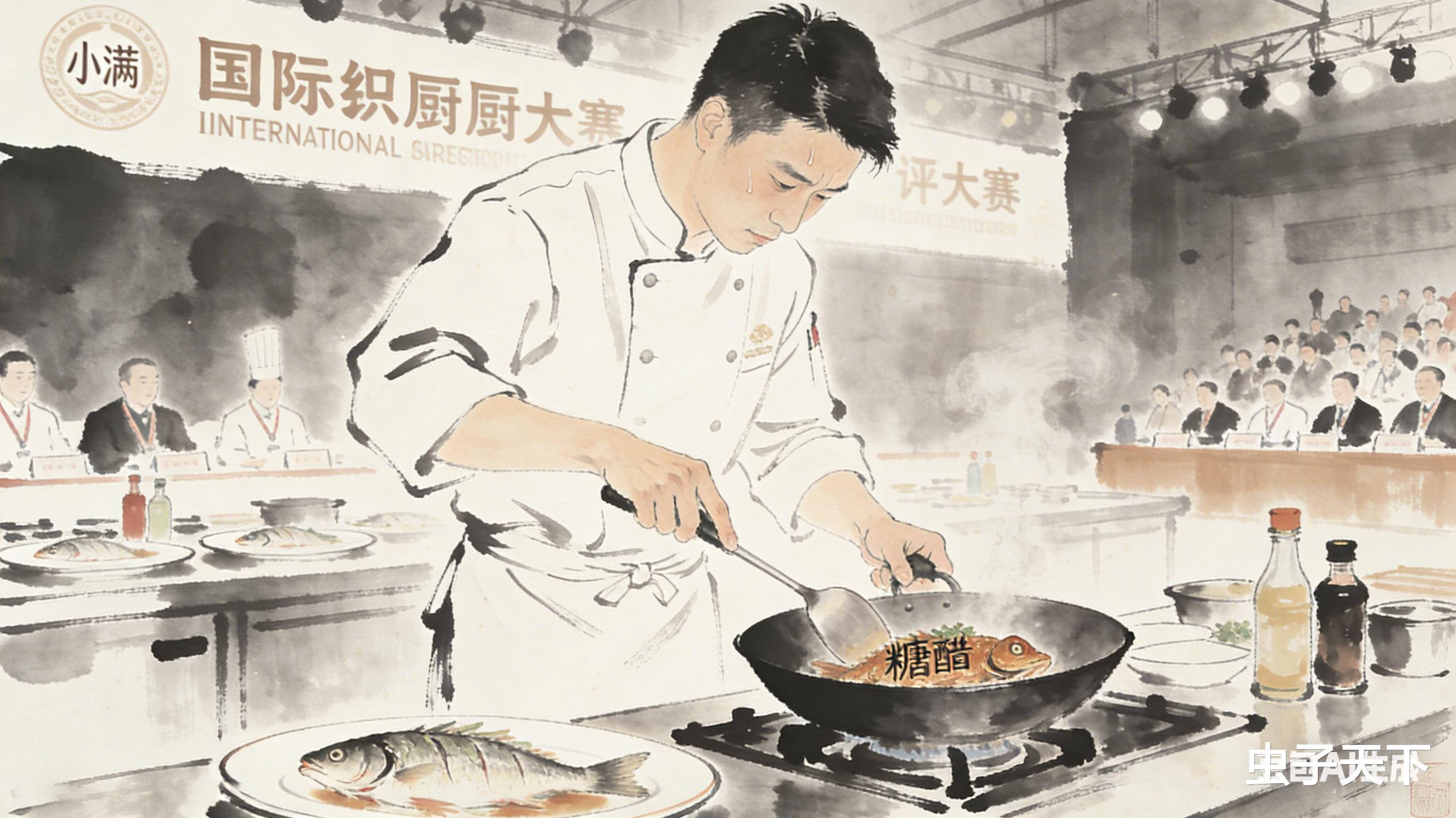 小满的脸瞬间白了,他站在台上,手足无措,脑子里突然想起了小时候,老林头做糖醋鱼时,总会往锅里加一勺自己晒的虾酱,还会念叨一句:“做菜跟做人一样,得有根,得有魂。”