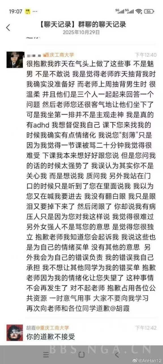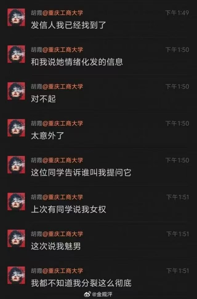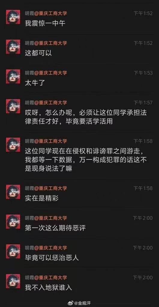重庆工商大学一新生女权,因为老师提问的问题答不上来,就把法学专业的女老师挂到微博,并造谣该女老师上课刻薄,还媚男。
