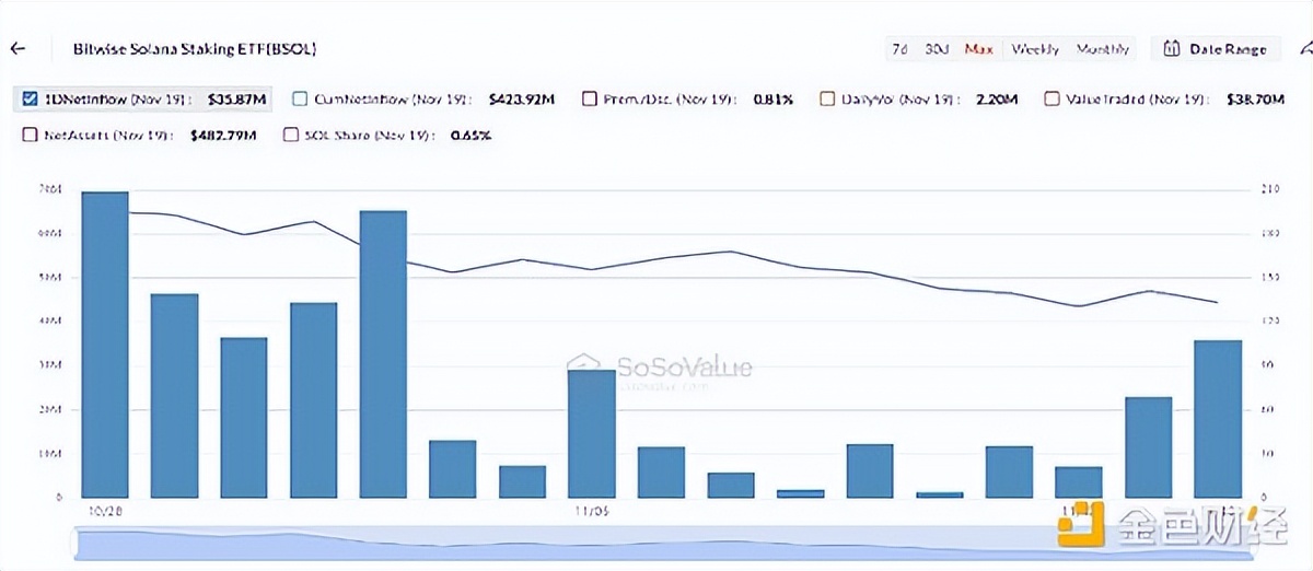 Bitwise Solana ETF净资金流动。数据来源:SoSoValue