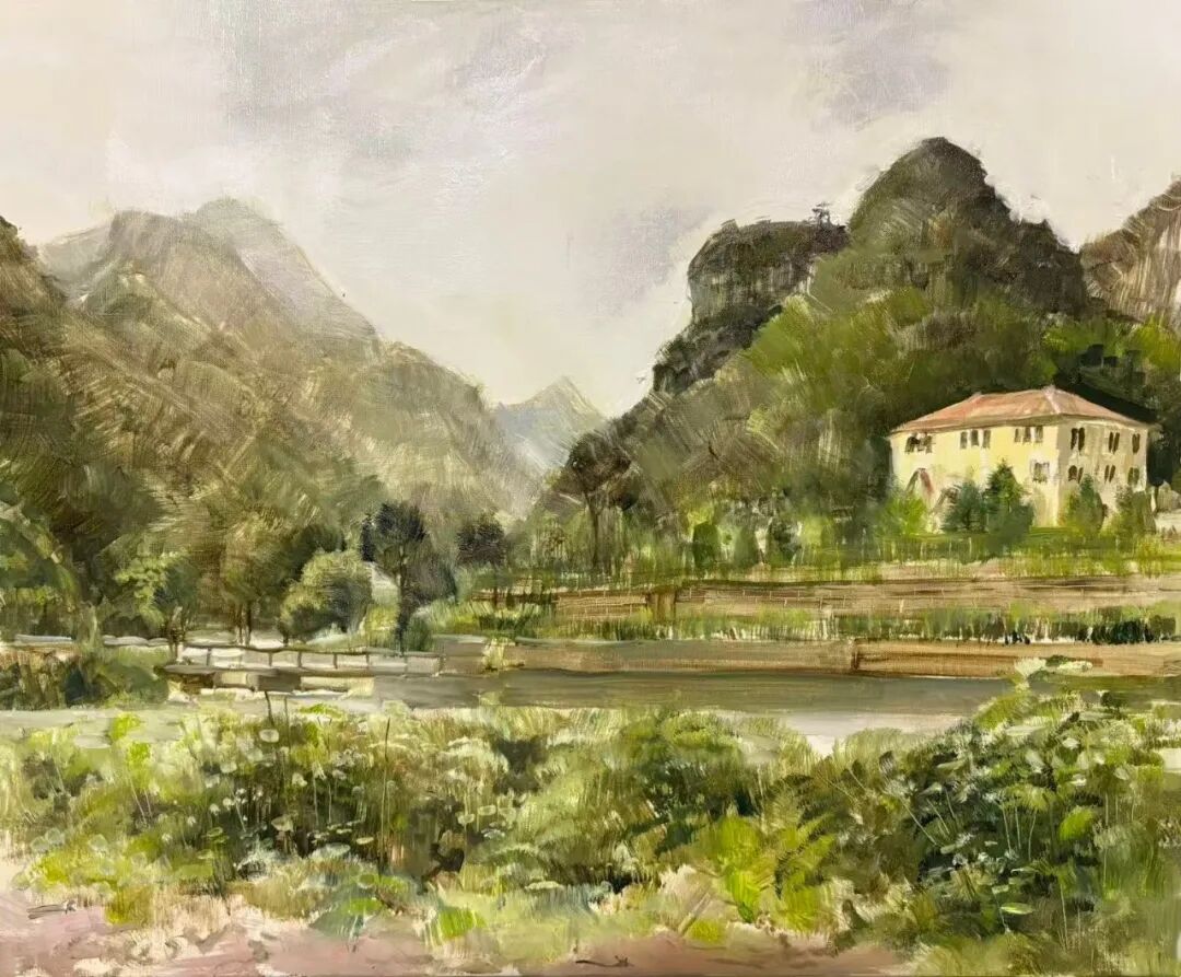 《十渡山水晨景》50x60cm 亚麻油彩 2025年 古棕