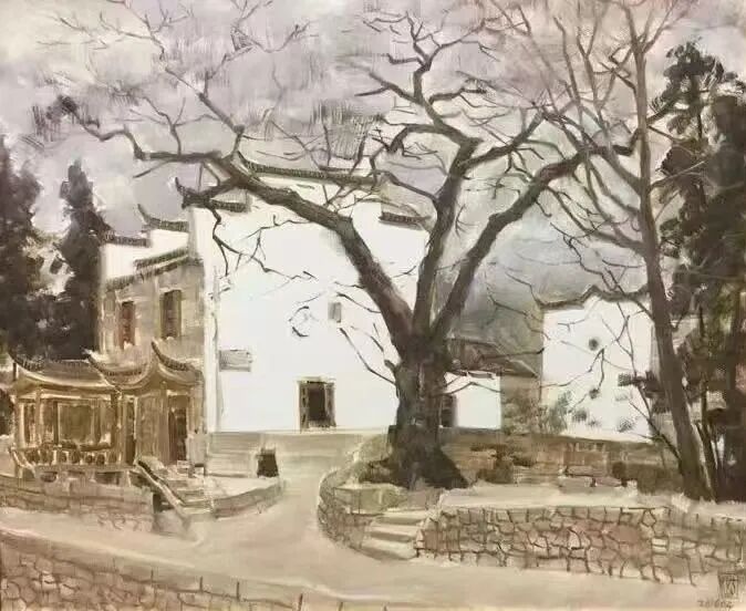 《查济镇上的古树》50x60cm 亚麻油彩 2021年 古棕