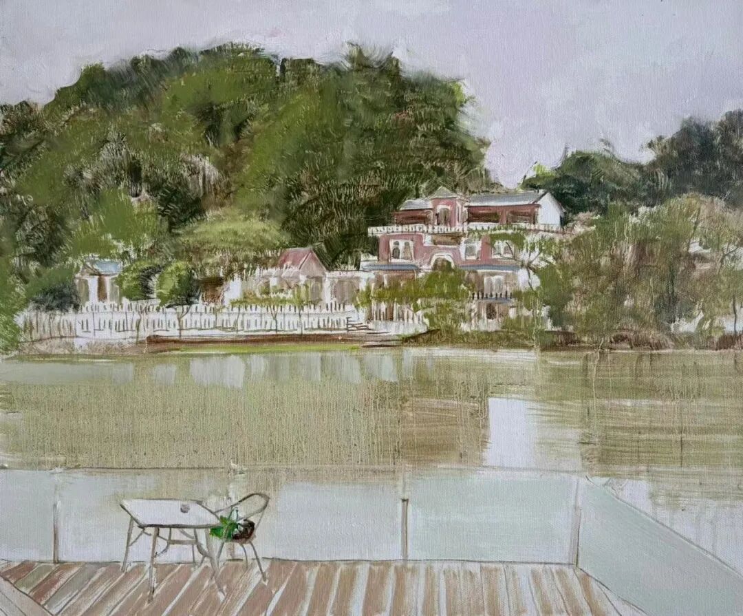 《广西龙江岸边》50x60cm 亚麻油彩 2018年古棕