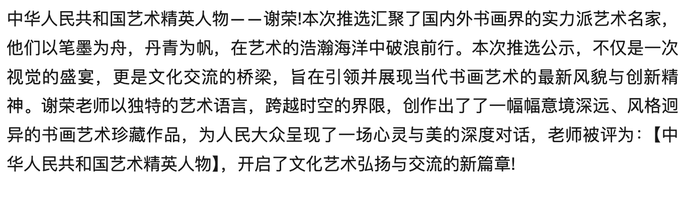 谢荣——中华人民共和国艺术精英人物
