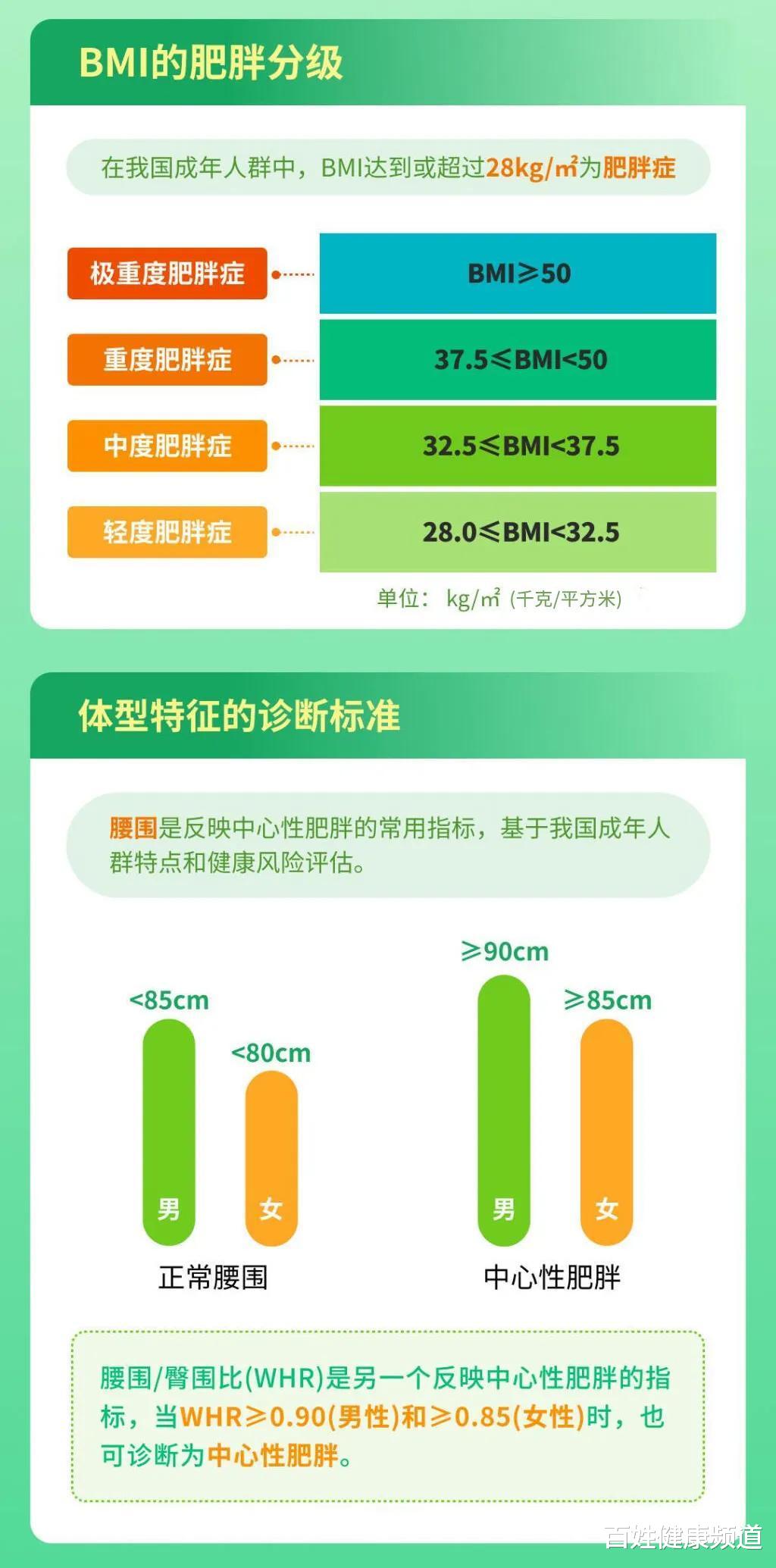 根据国家卫生健康委办公厅发布的《肥胖症诊疗指南(2024年版)》,BMI达到或超过28千克/平方米,就属于肥胖症了。而且肥胖症还分四个级别,轻度、中度、重度和极重度,大家可以对照着快速判断自己的体重情况。