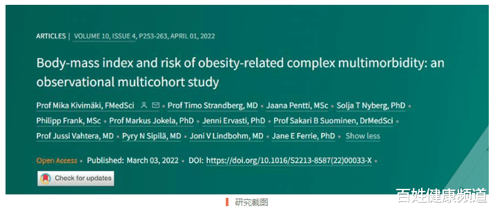 这项研究先对11万多人进行了分析,之后又在49万多人的队列中做了验证,经过10多年的随访发现:和健康体重的人相比,肥胖人群至少患一种肥胖相关疾病的风险,是前者的2.83倍;患两种疾病的风险,达到了5.17倍;而且肥胖程度越高,患病风险就越大。更值得警惕的是,肥胖人群55岁时,患上复杂多发病的风险,和正常体重人群75岁时的风险差不多,相当于提前20年面临健康危机。
