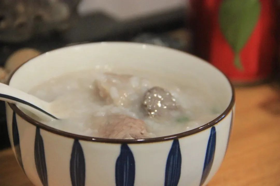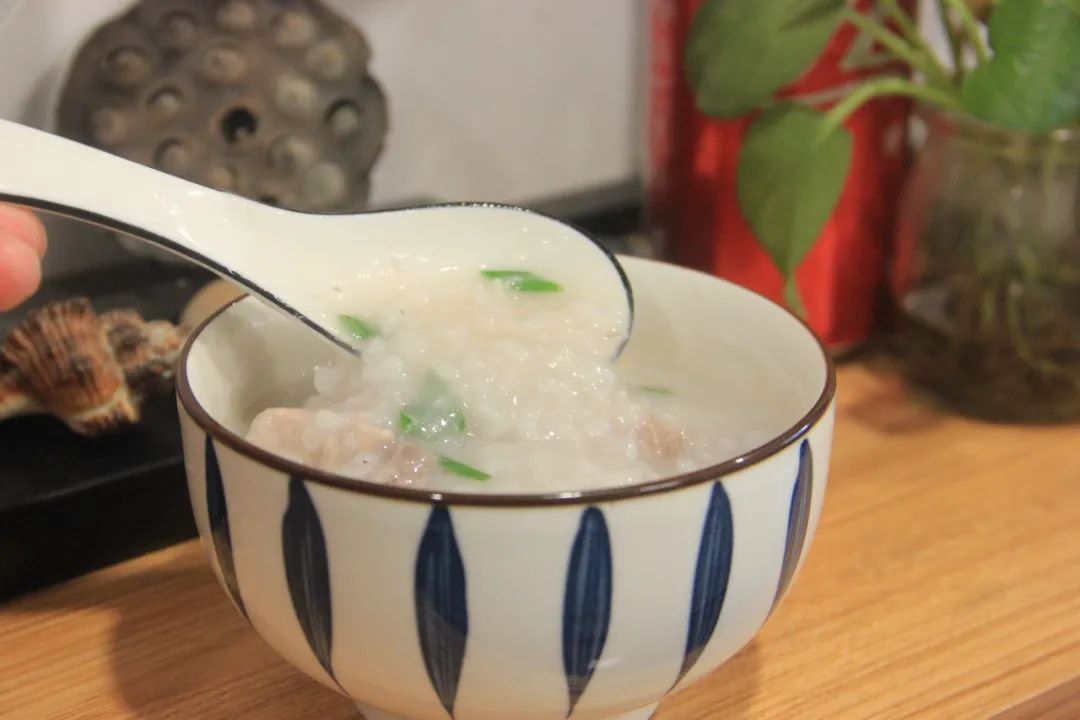 大米粥煮浓稠才好喝,水和食材比例搭配好,一般水是食材的三倍。