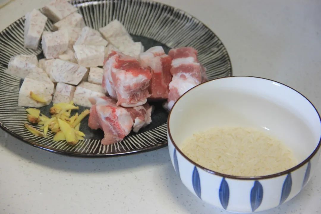用到的食材: 大米,排骨,芋头,姜丝,盐。