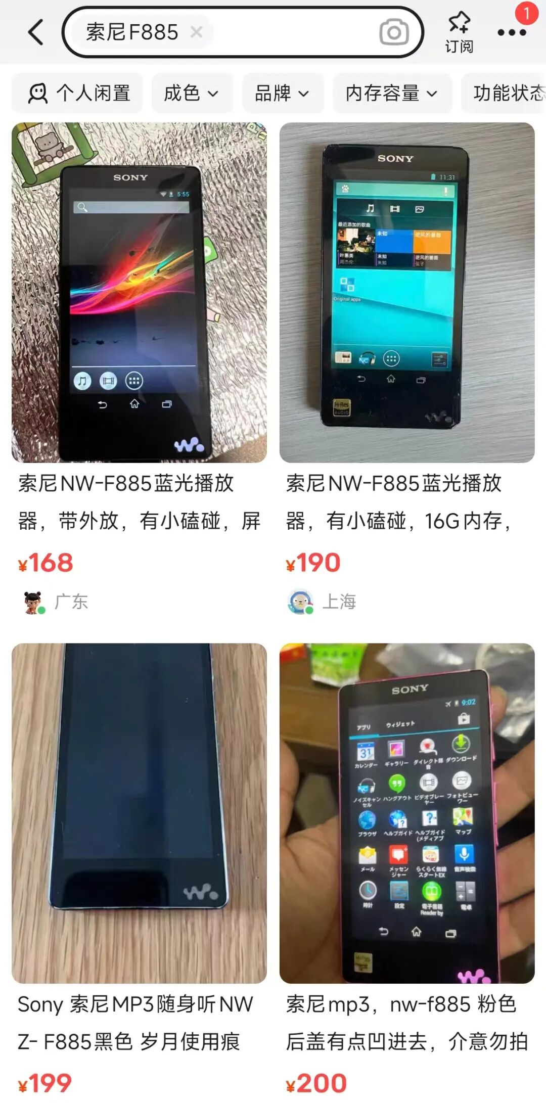 至于价格,当年全新的索尼F885可是要1999元的,如今屏幕完好,功能正常的二手最低168-200元,就剩全新价格的一折了。