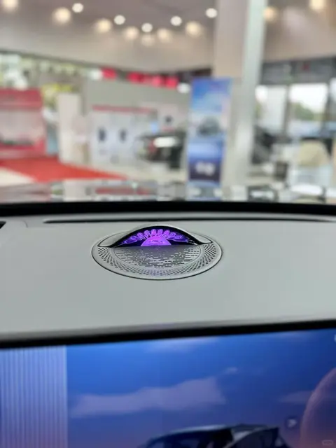 除了科技感,车内融入了许多体现中式审美的细节,例如空调出风口借鉴了“叠石理水”的园林设计理念,扬声器罩盖则宛如“湖心明月”,这些细节共同营造出一种独特而雅致的氛围。对于家庭用户而言,一些贴心的配置尤为值得称道:副驾座椅不仅配备了电动腿托,还设有“老板键”,可以一键调整至接近平躺的舒适姿态;前后排共四个座位都提供了加热和通风功能,无论严寒酷暑,都能照顾到每一位家人;甚至还有一个容量可观的车载冷暖箱,无论是夏日炎炎的一杯冷饮,还是寒风凛冽中的一杯热茶,都能随时满足。