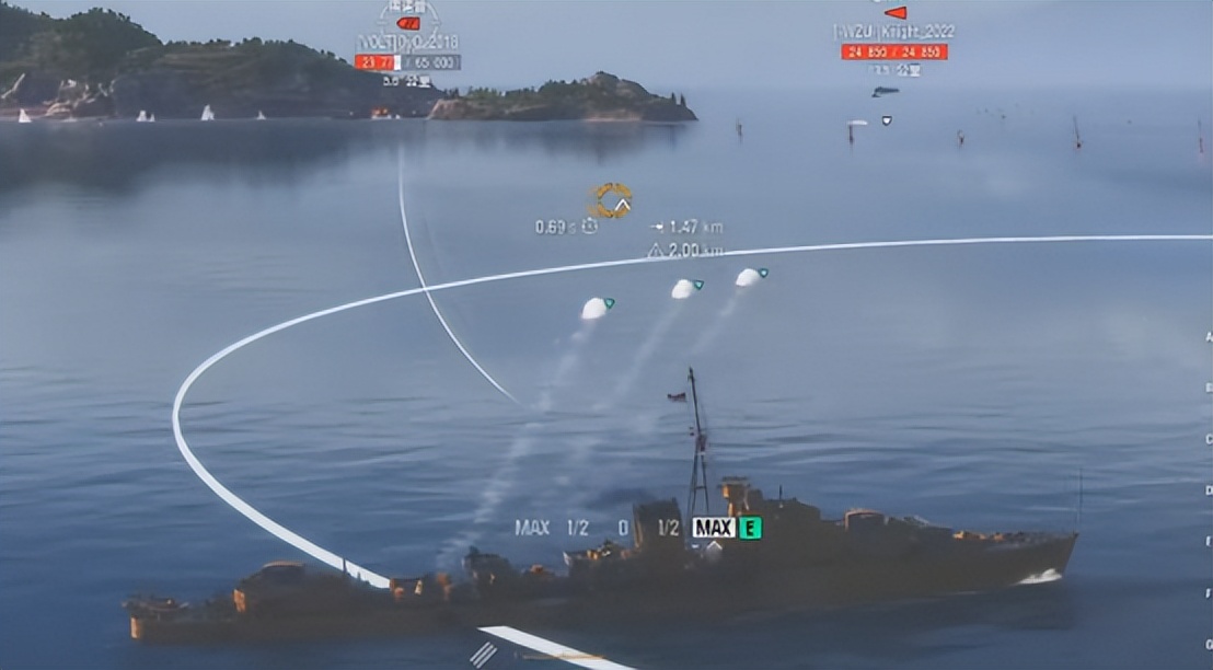鱼雷方面,朱庇特42为了换上高平两用副炮,拆除了一座五联装鱼雷发射管,只剩5枚鱼雷,对比杰维斯的鱼雷数量直接减半,120秒的装填时间和59节航速也不算出色,加上狭窄的鱼雷射界,雷击容错率极低。为了弥补不足,它的单发鱼雷标伤提升到18433,漏水系数和溅射伤害也很不错,这让它在近距离骑脸雷击时,同样能给敌方大型舰艇造成不小威胁。