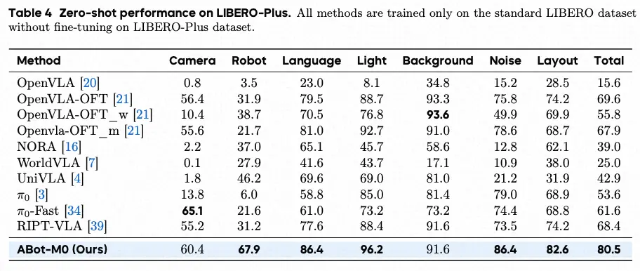 ABot-M0在Libero-Plus的评测结果