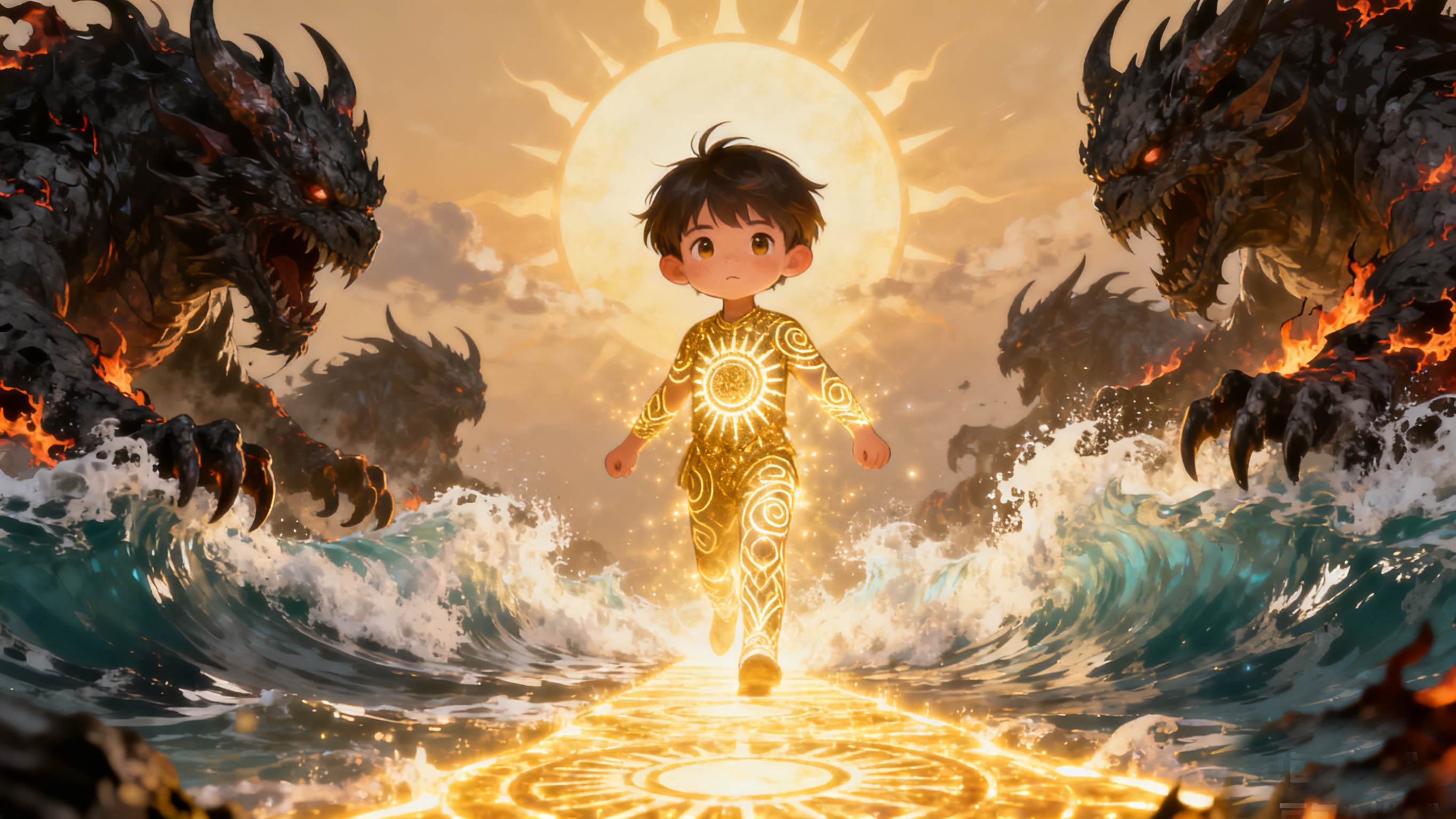 他踏出第一步,海水分开,露出一道直刺魇潮的黄金之路。魇兽嘶鸣,却无法逼近半寸。