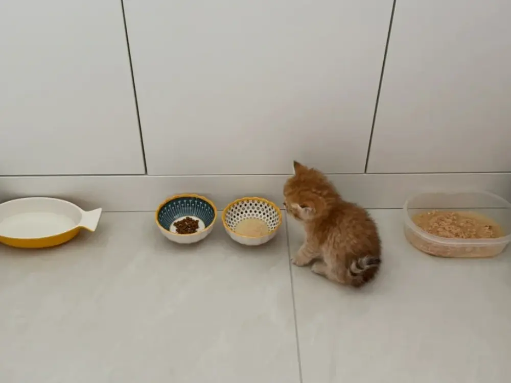 1个月后,母乳逐渐不足,小猫需要学着吃新食物。可以把猫粮用温水或羊奶粉泡软,泡到没有硬芯,方便它舔食。