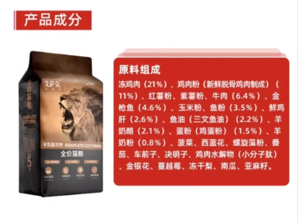 艾萨克是个国产宠物食品品牌,在宠物食品市场里有一定份额,线上线下不少渠道都能买到它家产品。艾萨克猫粮的配料,主要成分有冻鸡肉、鸡肉粉、三文鱼这些肉类,能给猫咪提供动物蛋白。里面也有木薯粉、豌豆这类植物性成分,这款猫粮里含些淀粉和植物蛋白。口感上,它的粮颗粒挺紧实的,猫咪嚼的时候能感觉到有一定硬度。因为肉源成分种类比较多,气味闻着会有些复杂。这款粮适合成年猫吃,能满足成年猫日常的营养需求。